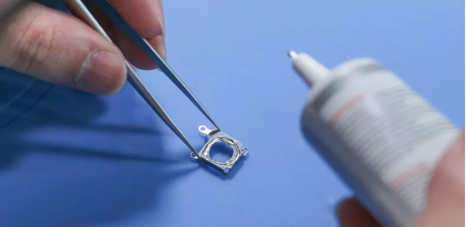 8、使用胶水粘合镜头保护框