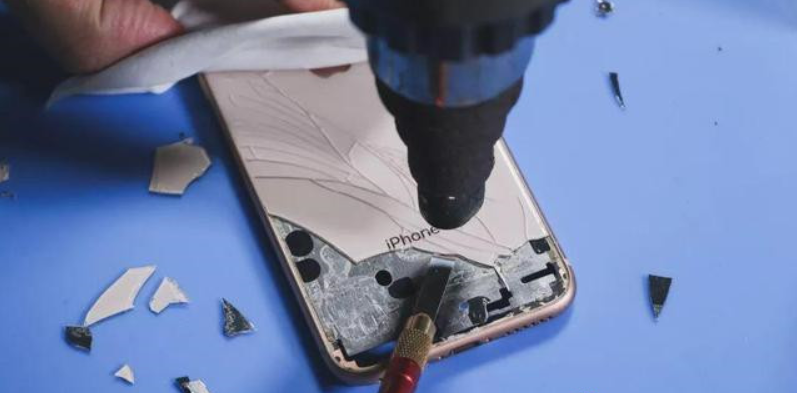 5、使用热风枪加热玻璃后盖,配合翘刀,拆除后壳残留玻璃碎片