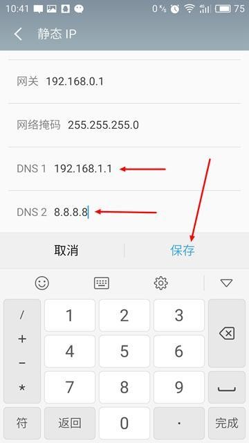 2、找到IP栏下的DNS,点击进入编辑界面,添加上合适的DNS(如8.8.8.8或114.114.114.114),上网速度可以更流畅了。