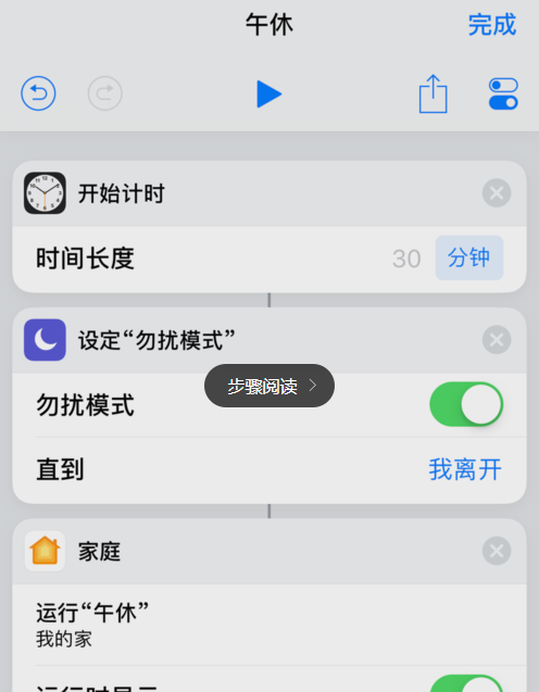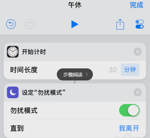 9、以上便是如何利用苹果手机中的“快捷指令”为自己创建一个午休的例子。还是那句话,快捷指令很强大,可以利用它实现更多更复杂的功能。当然,你也可以根据自己的实际需求,组合一些指令来完成你想要实现的功能。