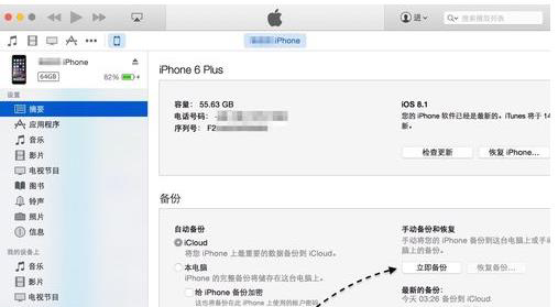 随后在 iPhone 的摘要信息界面里,请点击“立即备份”按钮,如图所示。