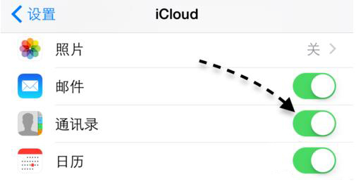 如果你以前还未登录的话,此时我们可以用自己的 Apple ID 来登录即可。登录并打开 iCloud 以后,检查列表中的“通讯录”是否已经打开。如下图所示,只要 iCloud 中的通讯录为打开就行了。接下来我们再去新的 iPhone 手机上,用同一个 Apple ID 账号来登录 iCloud 服务,同样打开通讯录选项。这样一来即可从旧 iPhone 上把通讯录导入到新手机上了。
