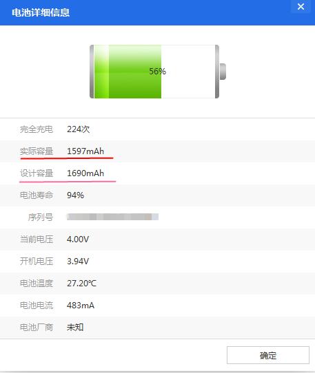 有更换过电池的也可以用此软件去查询是否是新电池,新电池应该是100%左右同样也是±2误差,充电次数应该是0。