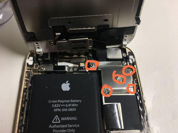 第三步:拧下屏幕排线保护盖的5颗螺丝,注意的是螺丝有3颗短的,1颗长的。