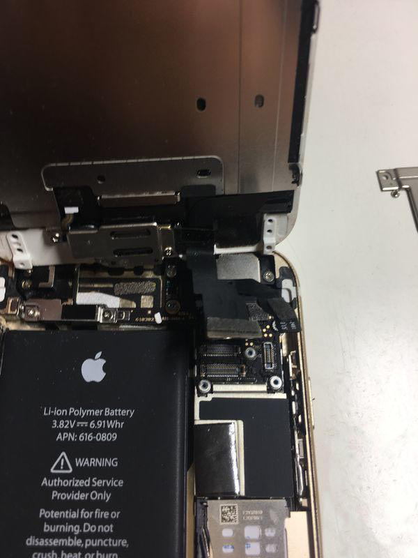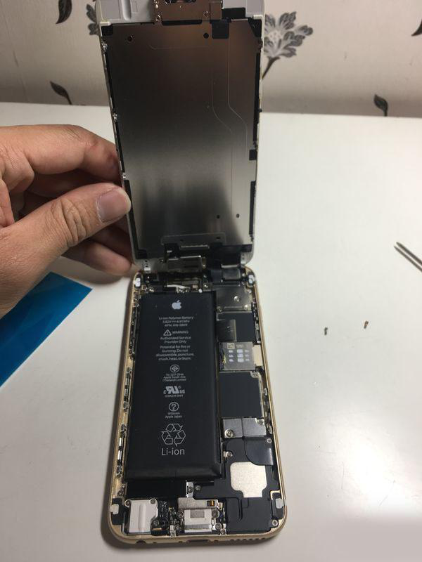去掉保护盖以后用撬棒断开屏幕排线的连接了,总共是4个依次断开。有人问不断开屏幕排线连接可以吗?当然可以,但是断开了更方便更换电池,因为电池拆起来比较费劲。