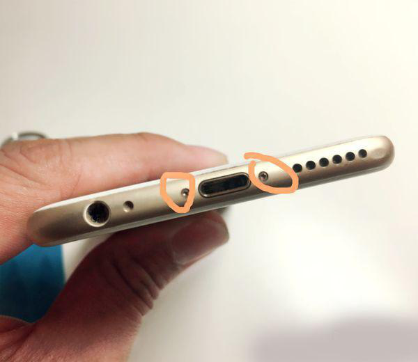 第一步:关机,找到手机充电接口两侧的两颗五角星螺丝,然后拧掉它们。