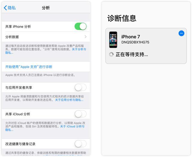 2、开启“设置”→“隐私”→“分析”→“共享iPhone分析”按钮。