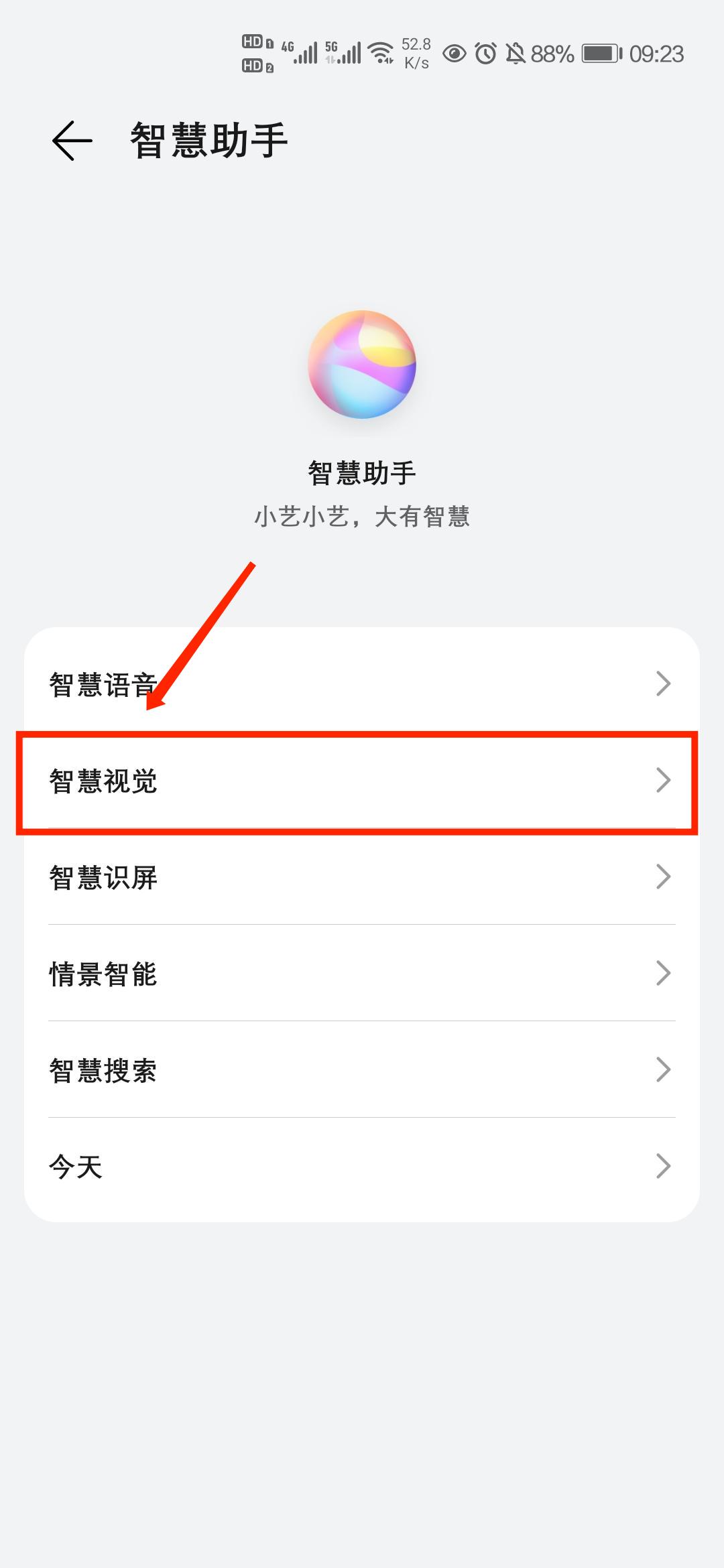 第三步:<智慧助手>里有五个选项,选择我们需要的<智慧视觉>。