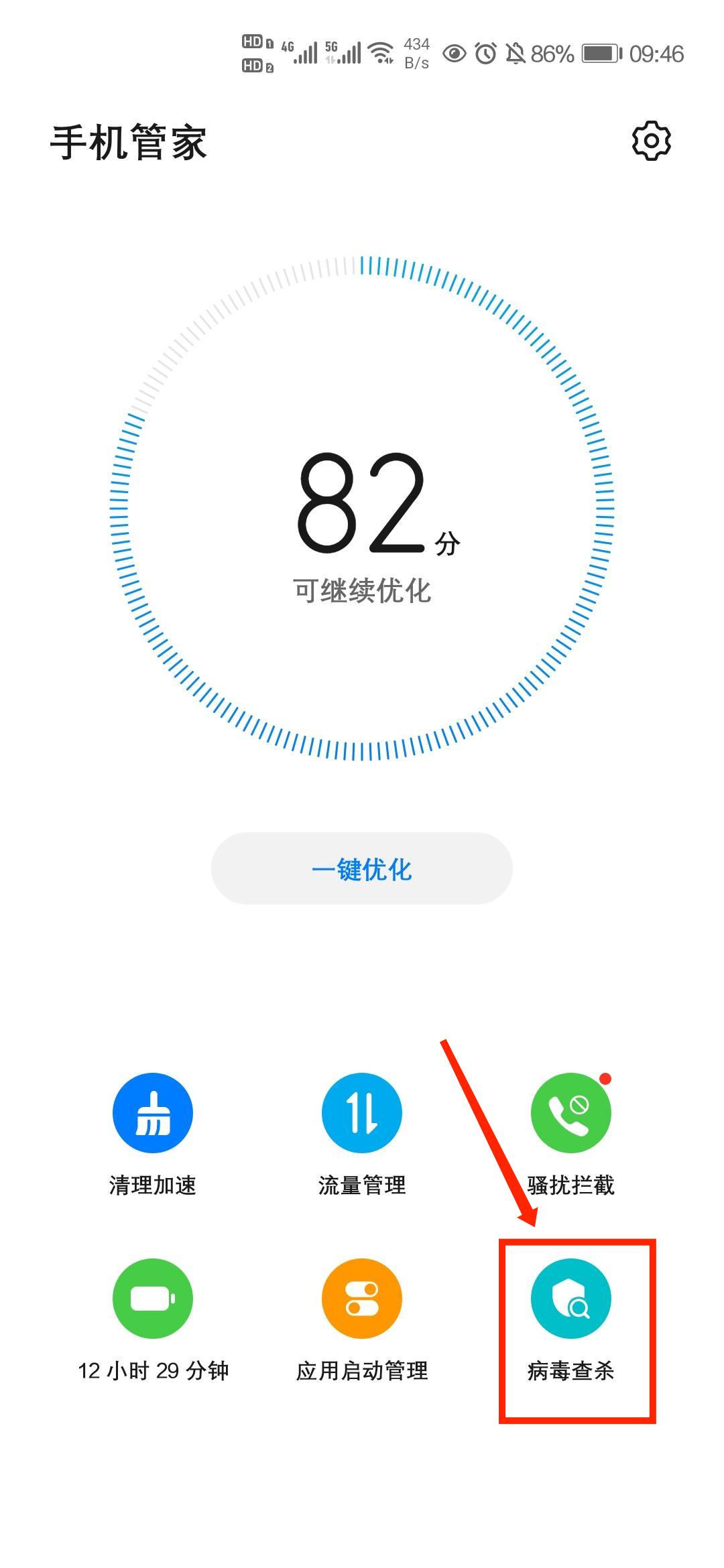 其他安卓手机也有自带的<手机管家>,操作过程是相同的,想知道手机是否被植入了木马如此操作即可。
